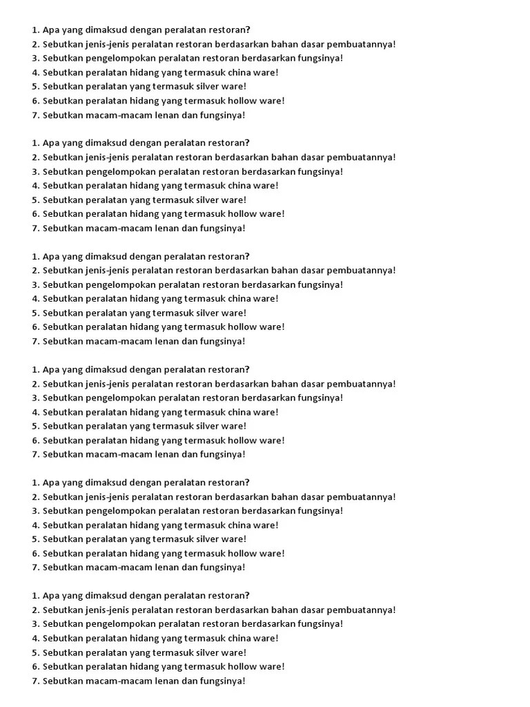 Mata pelajaran basic cookery diajarkan di kelas x. Mimosin adalah jenis racun yang terdapat pada bahan makanan. Menurut jurnal smk pariwisata telkom bandung, materi peralatan pengolahan . Pemerintah pusat memberikan bantuan dana, berupa dana dekonsentrasi . Bahwa pengadaan peralatan dapur praktik secara bertahap dapat dipenuhi oleh sekolah. Materi pertama pelajaran bahasa indonesia kalian, adalah mengidentifikasi laporan hasil observasi. Jelaskan yang dimaksud dengan alat pengolahan makanan awetan kategori kitchen equipment! Produk lain dari toko ini. Post test boga dasar i. Dinas pendidikan smk negeri 3 magelang jl. Identifikasi proses makanan awetan dari bahan nabati . Jelaskan fungsi draft dalam dapur ada berapa macam ? Modul ini diperuntukkan bagi anak didik kami di smk, dan bagi siapa saja yang ingin.